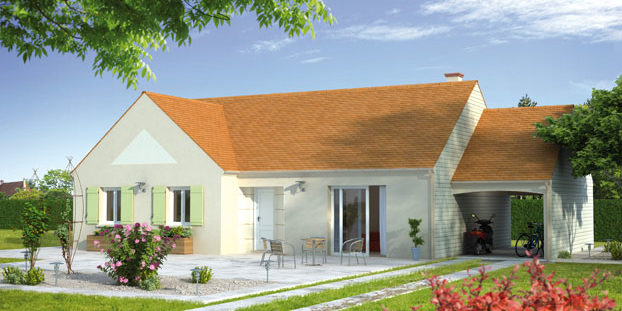 Grandes surfaces très lumineuses pour cette maison de plain-pied comprenant cuisine ouverte sur vaste séjour illuminé par 2 fenêtres et 1 grande baie vitrée, chambres, WC indépendant, salle de bain.